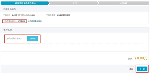更改操作係統後您的主機 IP 和數據庫 IP 會發生變化,請更改數據庫連接字符串,並上傳網站數據到新主機,網站調試完成後請及時更改域名解析。